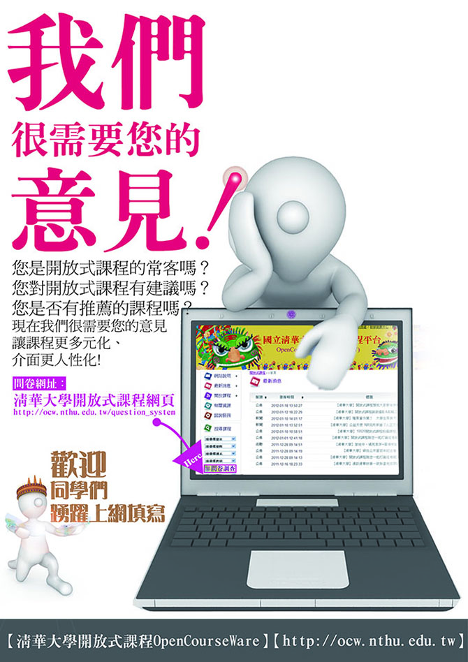 ◆填卷網址:http://ocw.nthu.edu.tw/question_system/