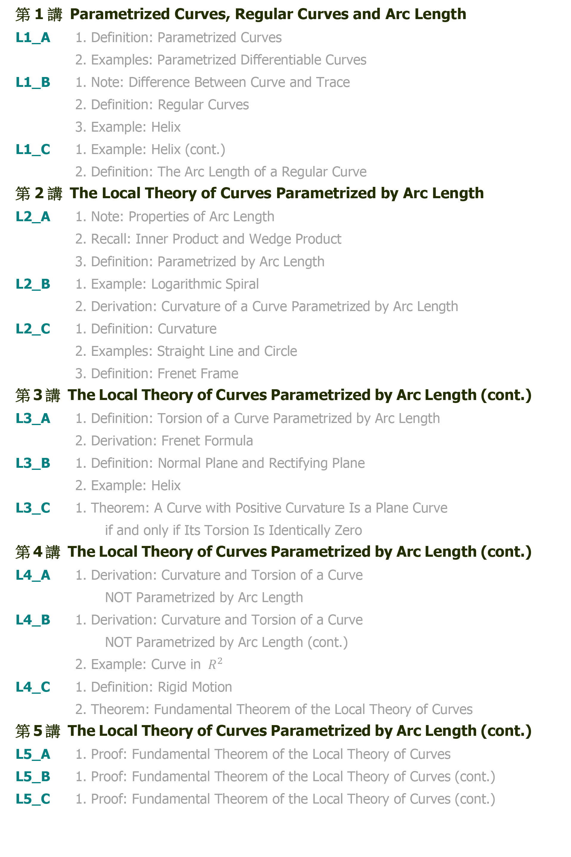 第1講 Parametrized Curves, Regular Curves and Arc Length