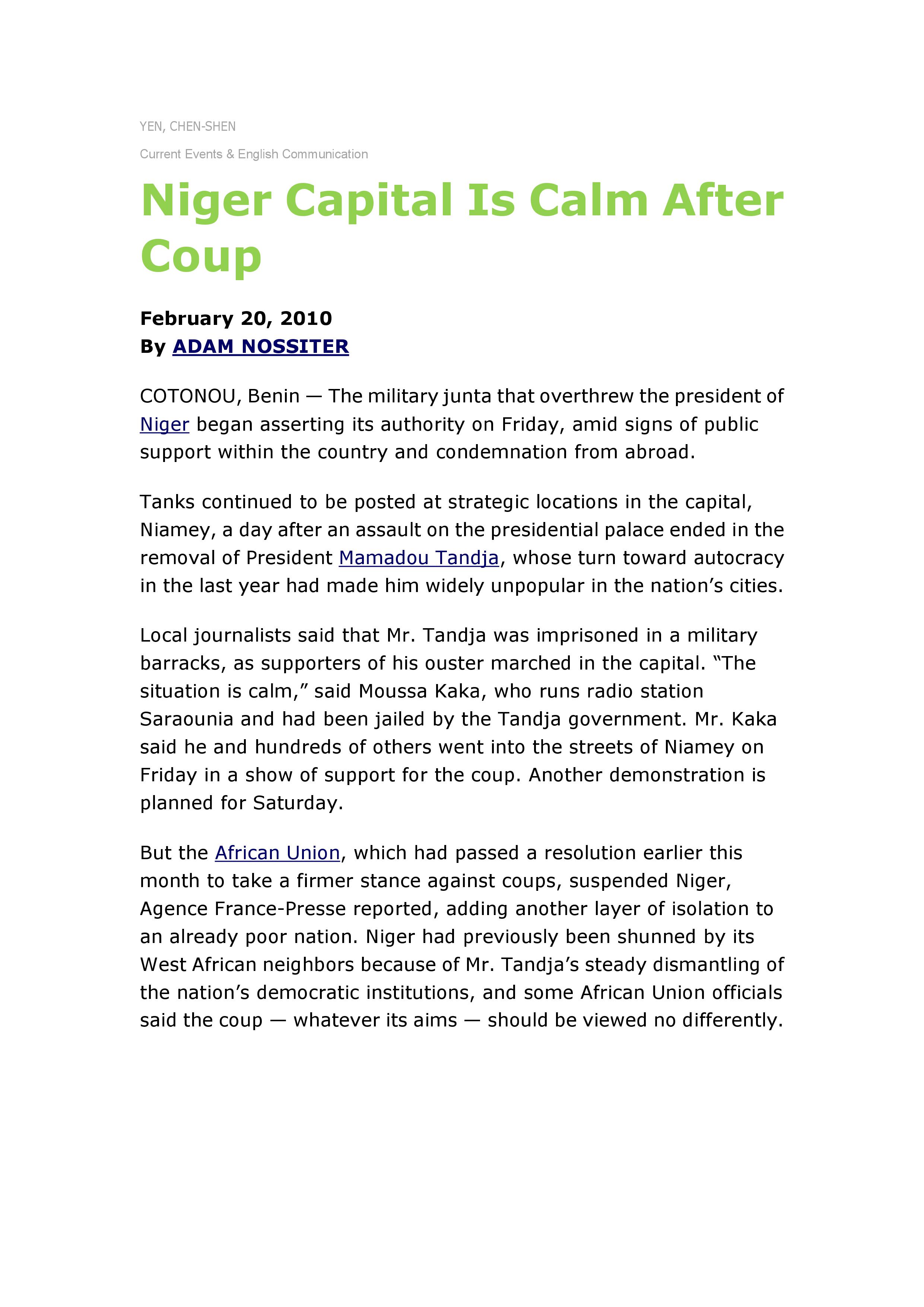 第2講 Niger Capital Is Calm After Coup