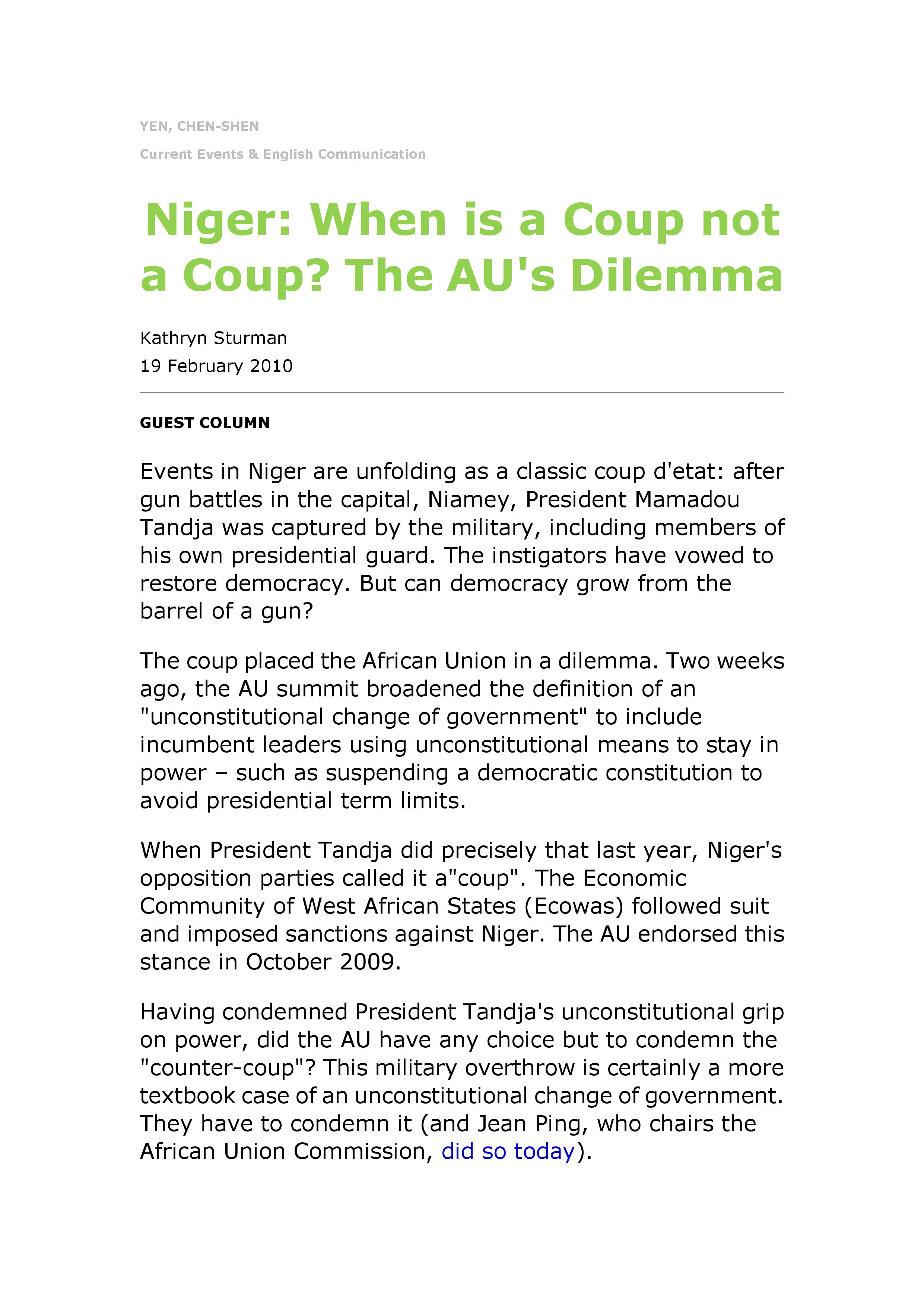 第3R講 Niger : When is a Coup not a Coup? The AU's Dilemma