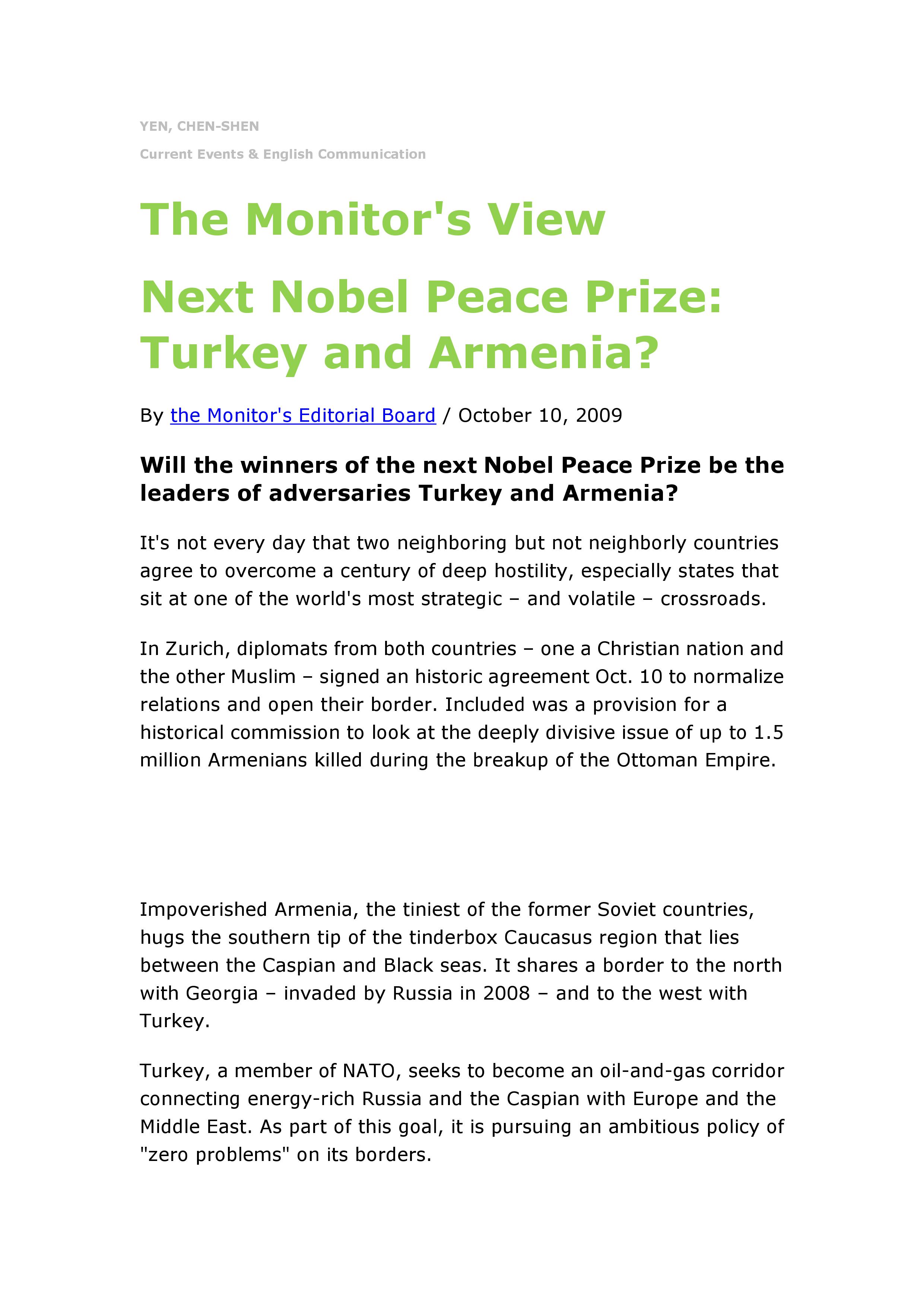 L6B_Next Nobel Peace Prize Turkey and Armenia