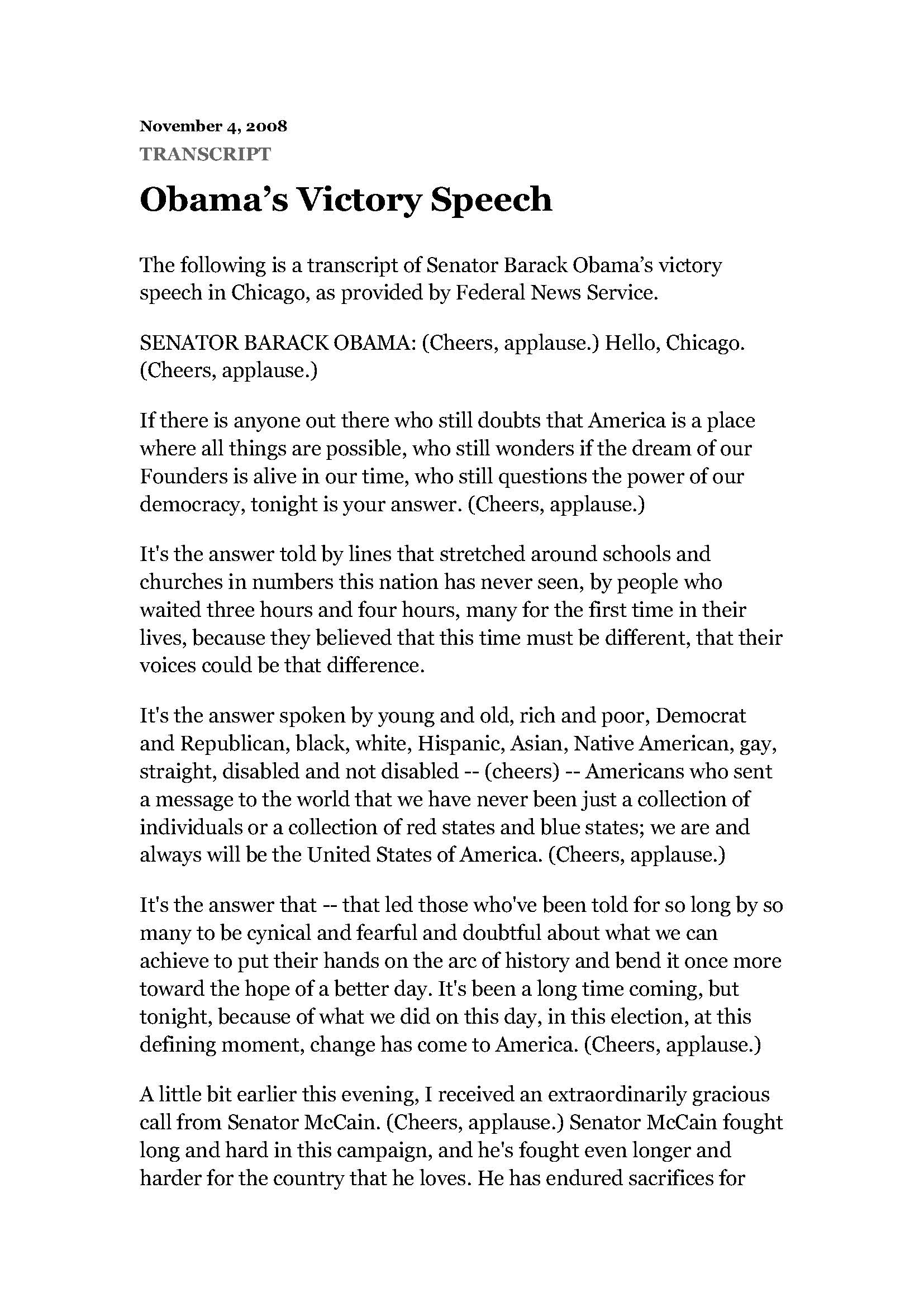 Obama Speech- Victory Speech